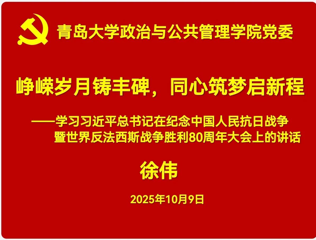 徐伟带领大家认真学习了习近平总书记在纪念中国人民抗日战争暨世界反法西斯战争胜利80周年大会上的重要讲话,从“以史为鉴、致敬英烈”、“抗战的历史地位与世界意义”、“强军使命与民族复兴”三个方面分享了感受,并提出三点与大家共勉:一是要铭记历史,矢志报国,深植家国情怀;二是要勤学笃行,锤炼本领,勇担时代重任;三是要提升素养,甘于奉献,引领社会风尚。在日常的学习和工作中充分发挥模范带头作用,在网络空间和社会生活中自觉维护公序良俗,继承和发扬团结协作、艰苦奋斗的优良传统,在集体中成长,在奉献中实现价值,以实际行动为全面建设社会主义现代化国家、推进中华民族伟大复兴贡献青春、智慧和力量。
