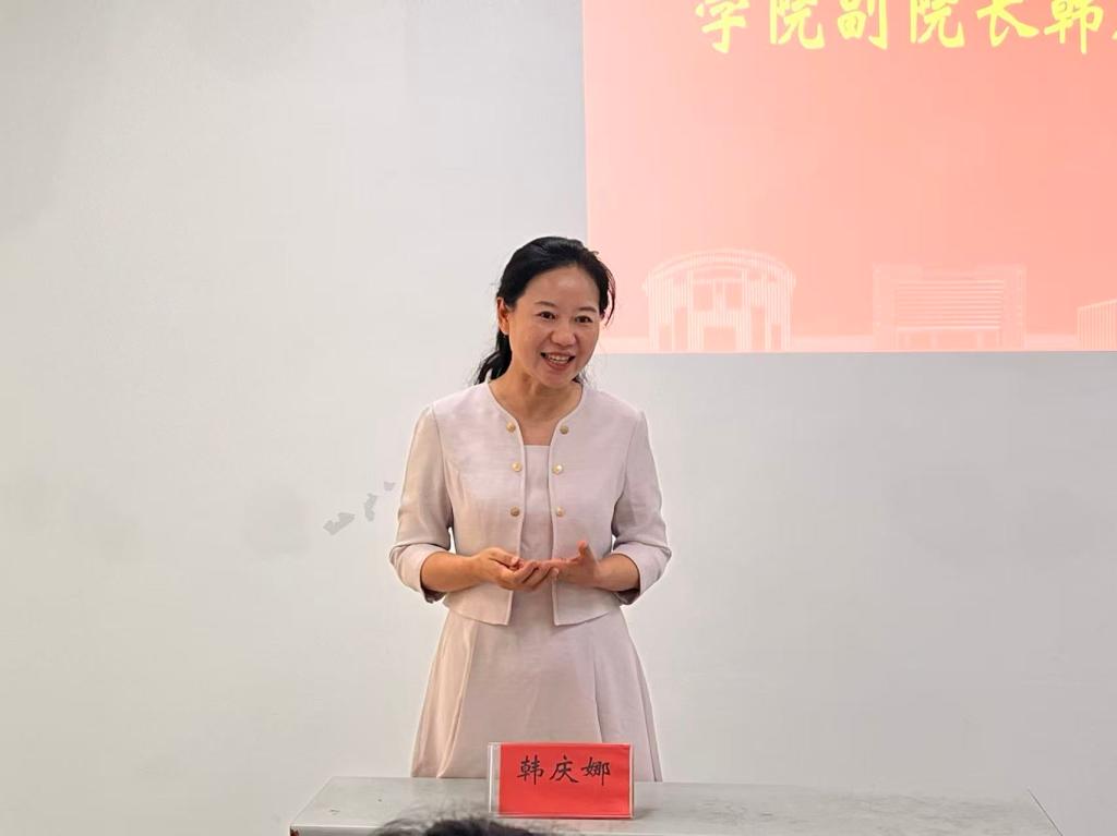 韩庆娜从学院培养方案入手,表示学院高度重视研究生的教育培养,加速推进研究生教育的国际化发展,她鼓励同学们利用学校学院丰富的资源,积极申报出国访学研学项目。随后,韩庆娜对全体新生提出四方面要求,一是作为新时代青年,应当厚植家国情怀,在学术磨砺中锻造人格;二是要养成独立思考的能力,对言论负责;三是要以研为本、唯实求真,以研究性学习为导向,严谨对待学术问题;四是在课余期间应积极参与助研助教与学科竞赛,走向社会参加实践,提高综合素质。