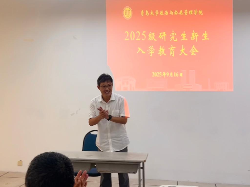 于二号实验楼405教室举行“政”领新程,研途奋楫——2025级研究生新生入学教育大会。学院党委书记尹文博、院长陈洪连、党委副书记徐伟、副院长韩庆娜、各学科负责人、研究生教务负责人、研究生辅导员老师及2025级全体研究生参加了本次会议,会议由徐伟主持。