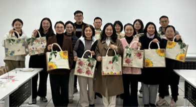 学院精心筹备了麻布包、装饰图纸和丝巾等材料,党委副书记徐伟为大家细致讲解了蝶古巴特包的制作技巧、粘贴流程与注意事项。活动现场氛围温馨融洽、轻松愉悦,老师们认真挑选心仪图案,全神贯注投入创作。从图案裁剪、精准粘贴到精心修饰,每一个步骤都专注投入,大家在欢声笑语中交流心得、分享创意。完成粘贴后,老师们纷纷为作品系上飘逸丝巾,一个个独具匠心、饱含巧思的蝶古巴特包就此诞生,承载着老师们的热爱与美好心意。
